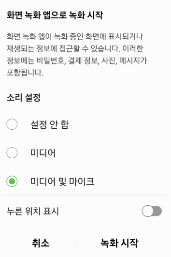 - '녹화 시작'을 눌러 녹음(녹화)을 시작하세요.